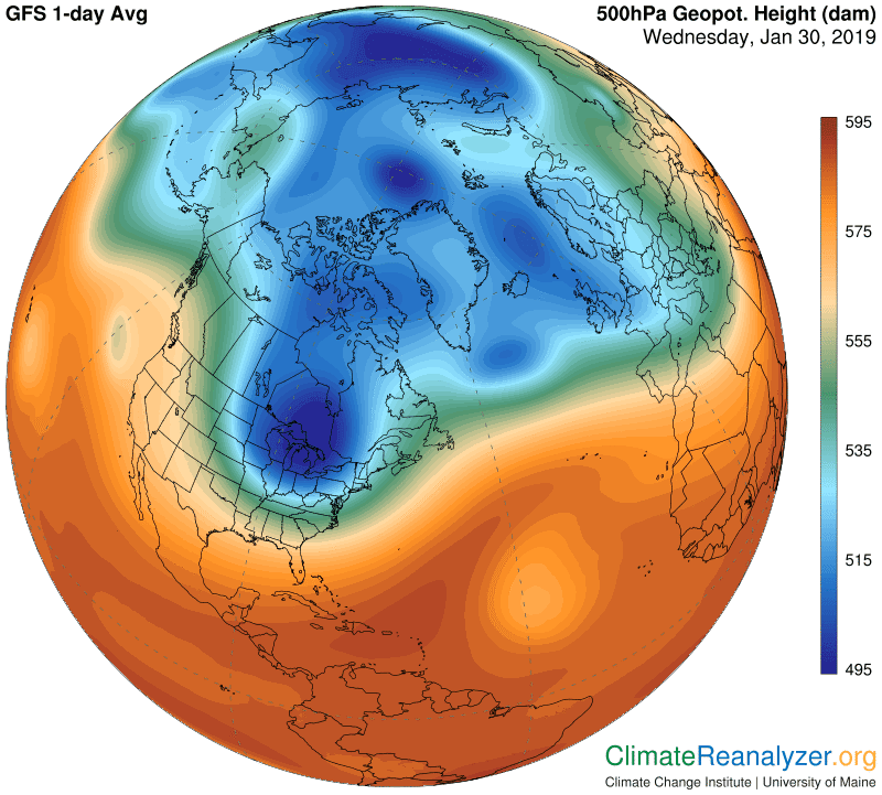 Rogue vortices spin away from the Polar Vortex especially when the Vortex is stretched thin, which is also what is happening. The essential look of 2019 is a much warmer Alaska continuously warmed by the Pacific sst Blob cyclones, which turned the jet stream strait towards Chicago, only now we have a gathering of much colder air which took a month or so to gain extent and to permeate heavily populated areas. WD January 28 2019