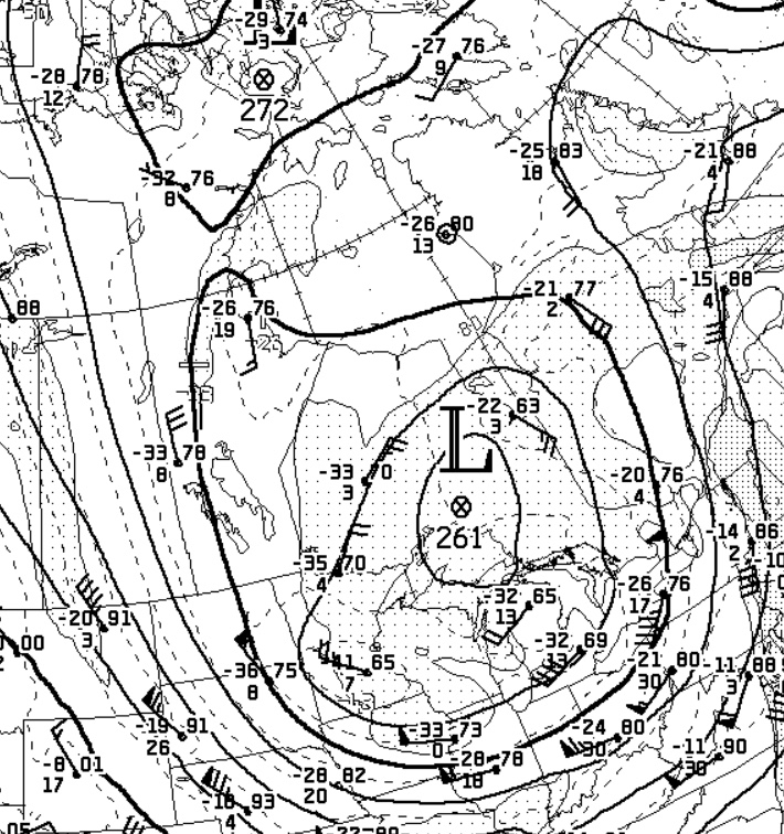 January 31 -28.3 C -16.5 700 mb temperatures.