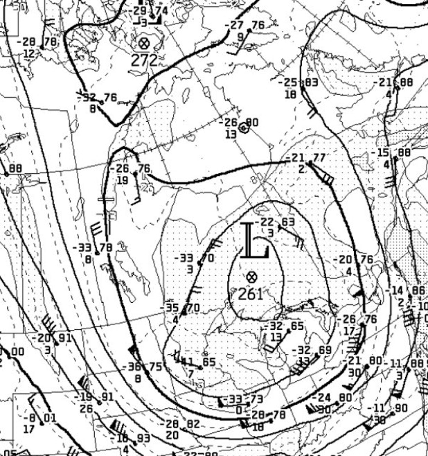 January 31 -28.3 C -16.5 700 mb temperatures.