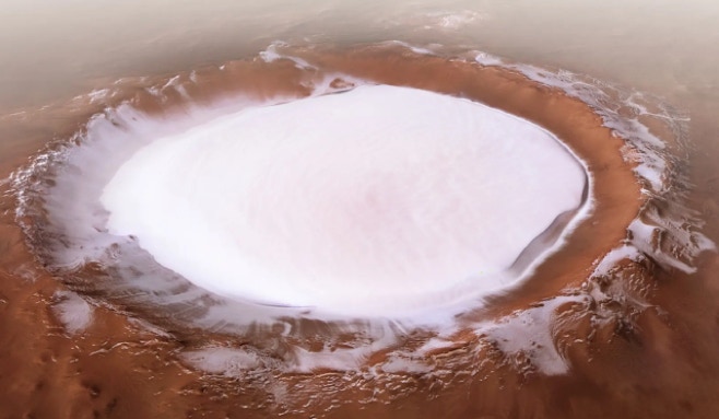 ~ESA great capture of trapped in a crater ice infers a lot of water on Mars