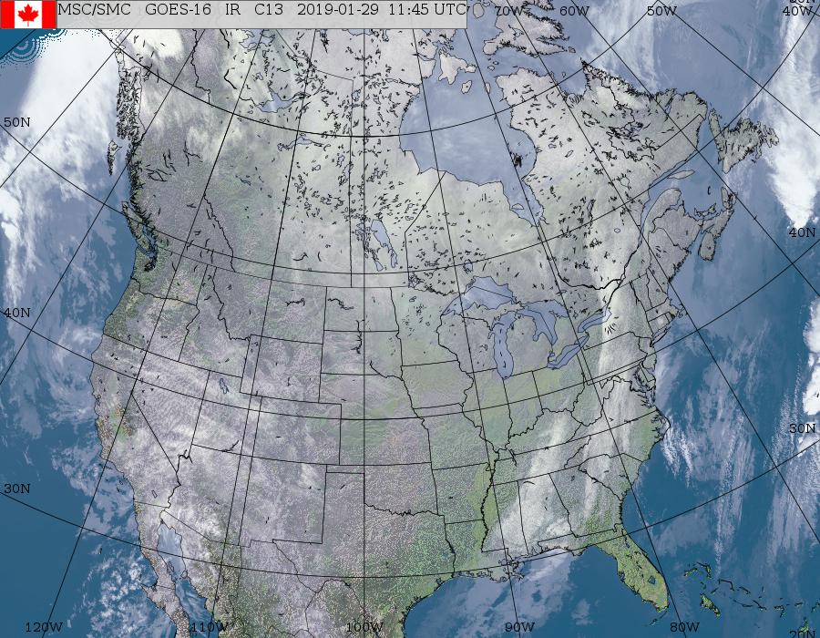 This January 29 2019 CMC IR picture gives an idea of how much snow on ground there is, not much throughout North America.